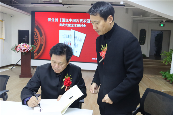 10月26日,著名书画家、首都师范大学教授何公洲的《图说中国古代衣冠史》研讨会在北京白孔雀艺术世界举行。