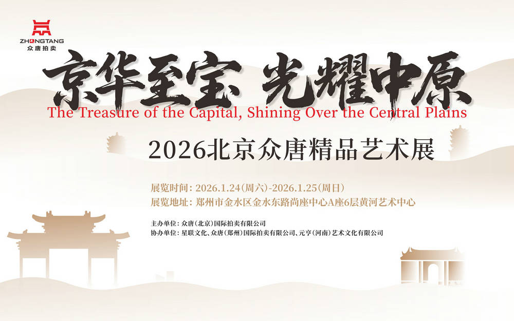 近日,北京众唐拍卖有限公司正式宣布,将于2026年1月在河南省郑州市举办“京华至宝 光耀中原——北京众唐精品艺术展”,并同步启动面向全国的藏品征集工作。本次活动由众唐(北京)国际拍卖有限公司主办,星联文化、众唐(郑州)国际拍卖有限公司、元亨(河南)艺术文化有限公司共同协办。旨在搭建高水准的艺术交流平台,汇聚京城与中原的文化精粹,推动现当代艺术与传统收藏品的市场互动。