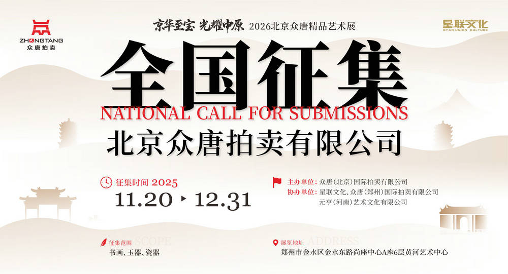 随着征集工作的开展与展期的临近,众唐拍卖期待与全国藏家携手,共同呈现一场融合经典与当代、连接北京与中原的精品艺术盛会。