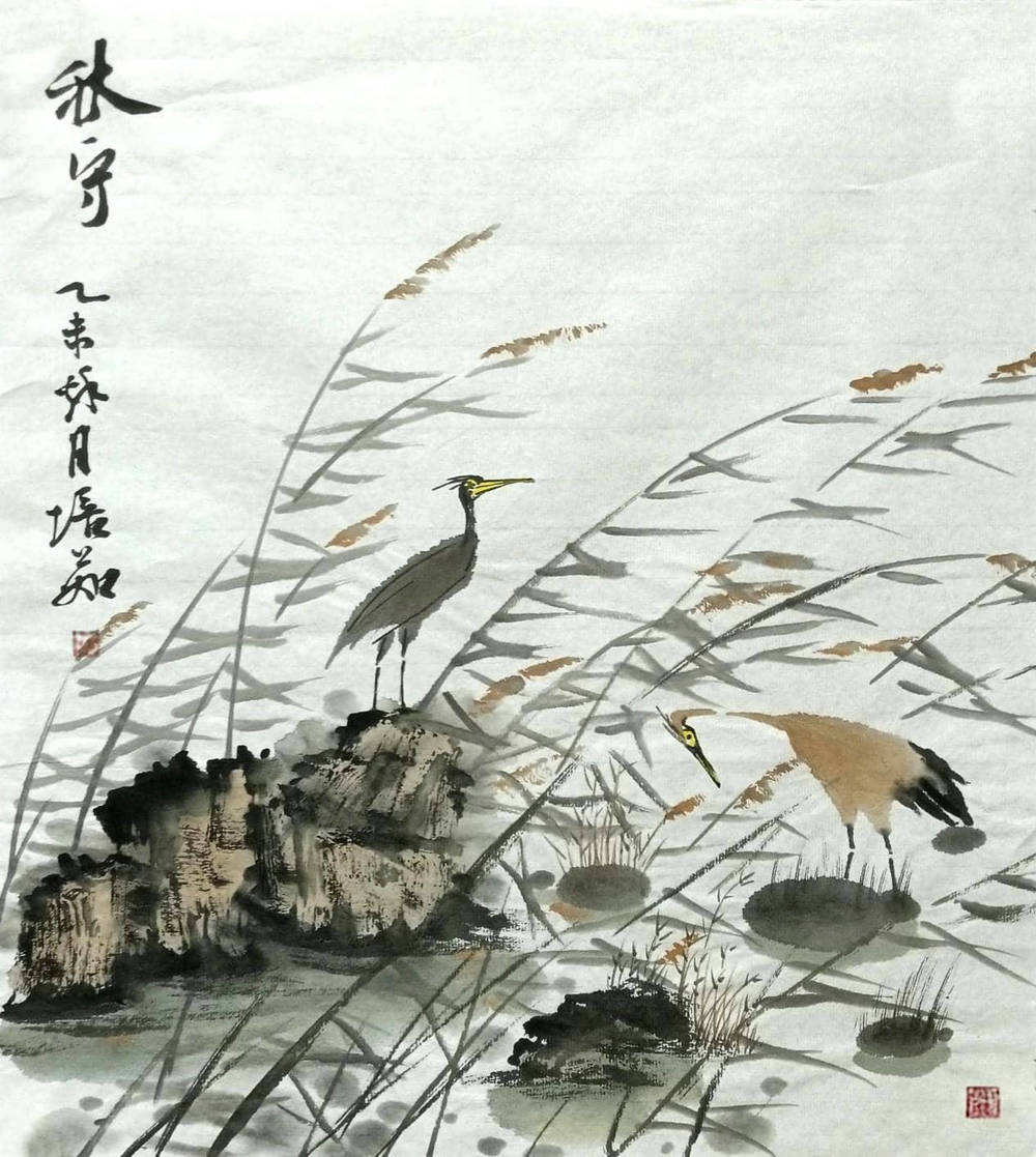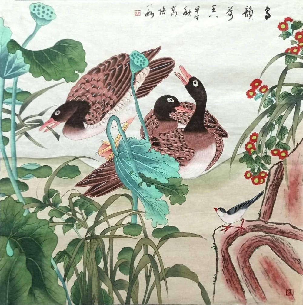擅长花鸟及山水,作品特点并加以创新,发扬了国画的优良传统,在绘画技术上,一反勾勒法而用“没骨法”,用“撞水撞粉”法, 以求其真。作品以传统笔墨技法为主,在形态、色彩、构图、笔 调上的表现清新可喜,雅俗共赏,极具收藏价值。