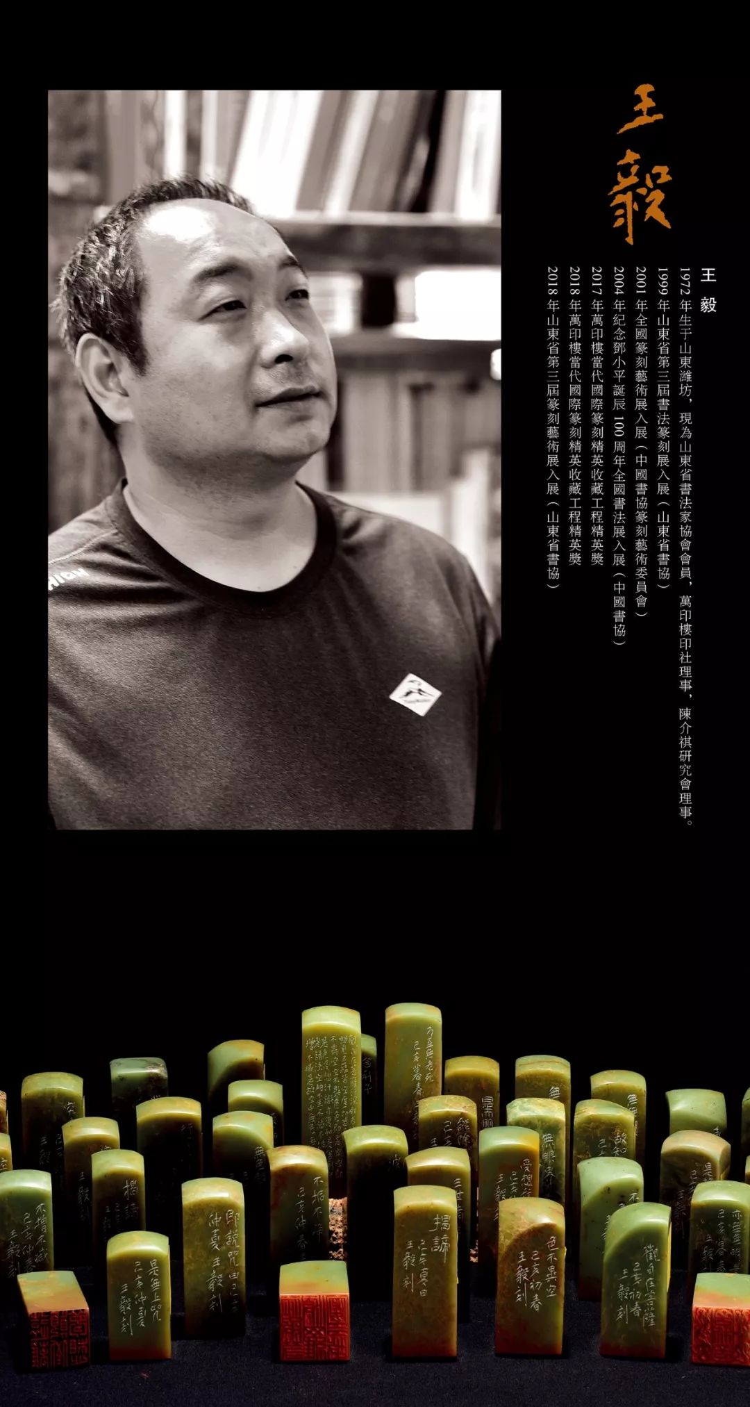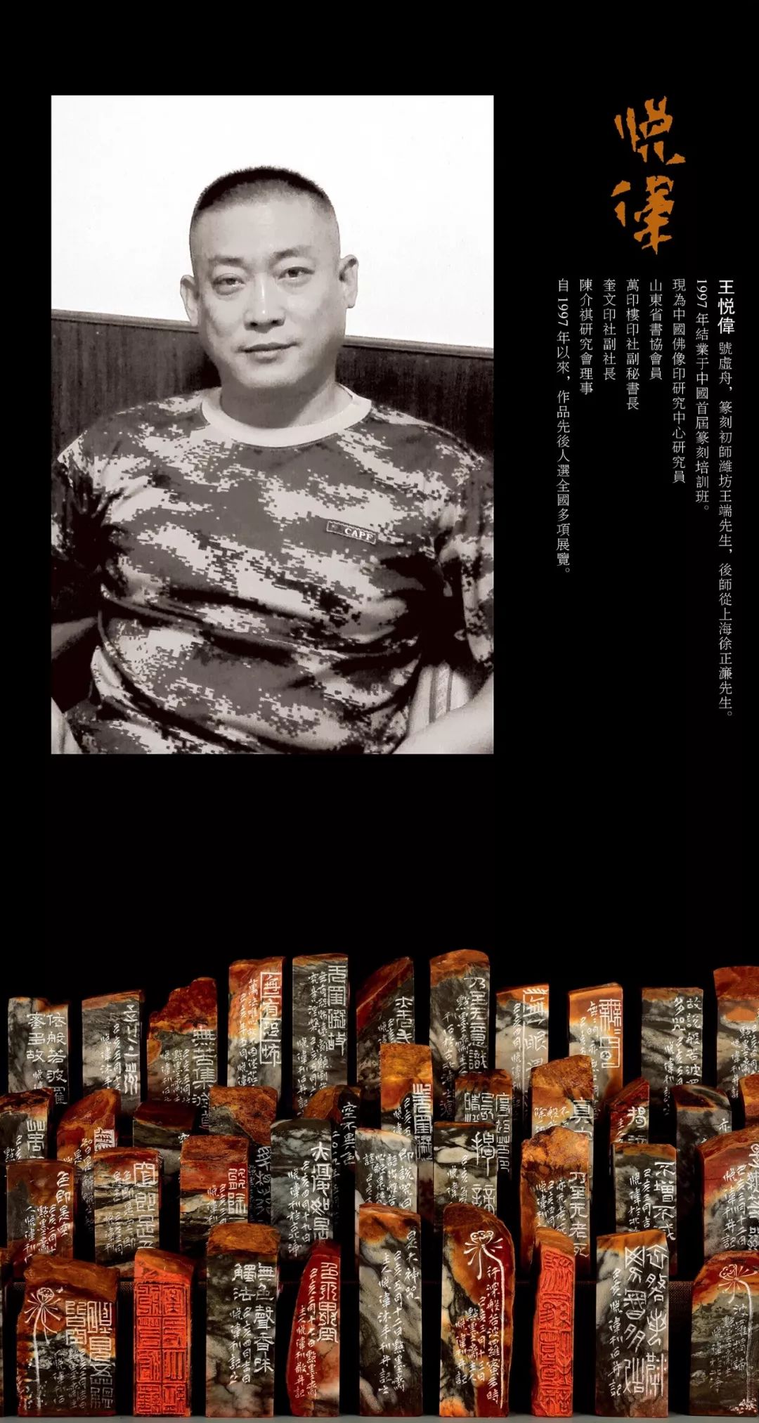 1997年结业于中国首届篆刻培训班。现为中国佛像印研究中心研究员,山东省书协会员,万印楼印社副秘书长,奎文印社副社长,陈介祺研究会理事、印章石交流中心主任。自1997年以来,作品先后人选全国多项展览。
