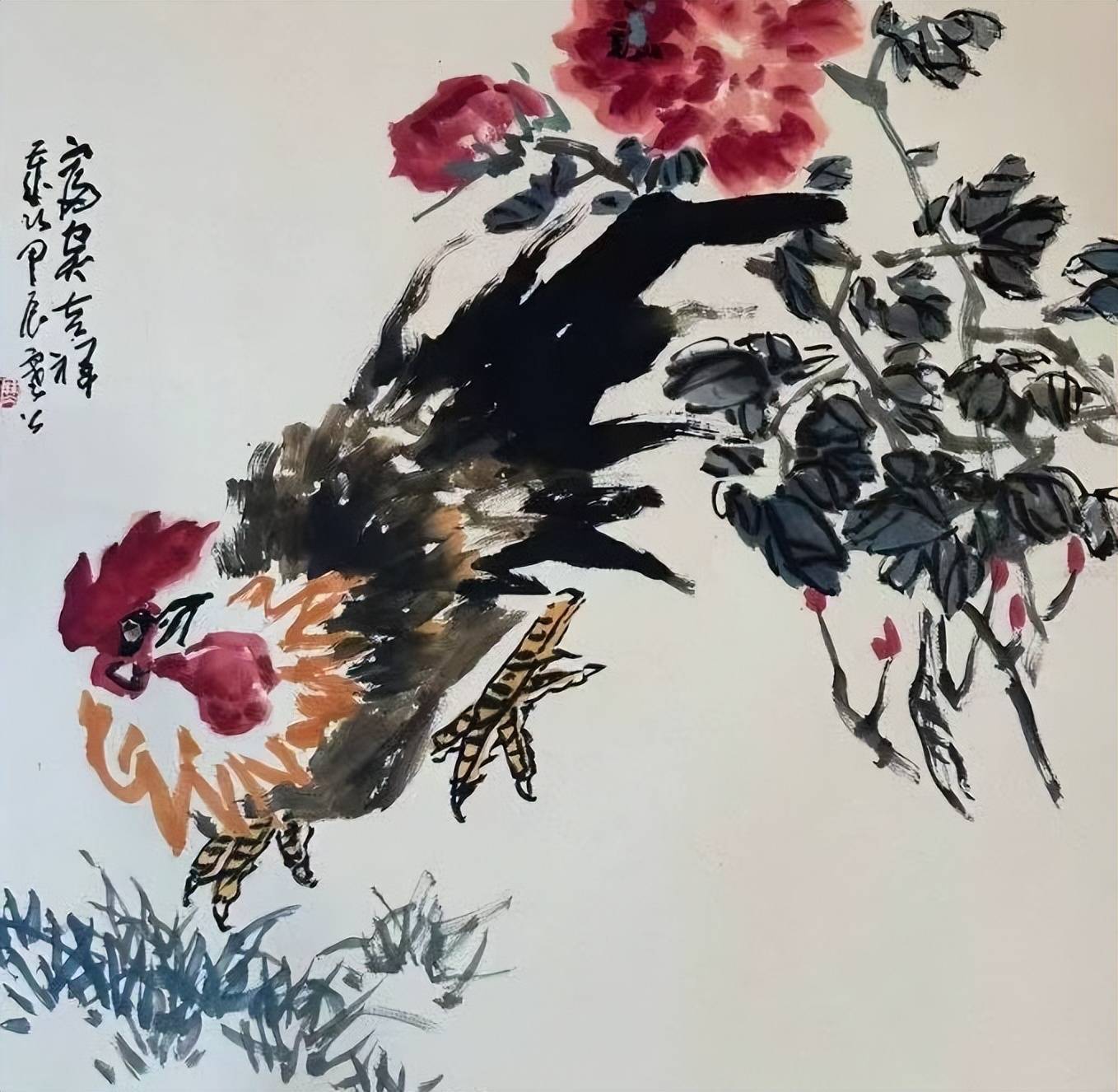 熟悉张寒公的人都知道,他笔下的大写意花鸟,既有吴冠中先生追求的“形神兼备”,又独具个人风骨。其牡丹清逸高古,不流于俗艳,笔墨间藏着文人雅韵;荷花“出淤泥而不染”,线条简练却张力十足,将东方美学的留白艺术与西方绘画的光影感巧妙融合。这正是他对师训的最好践行——先生教会他打破艺术边界,他则用数十年深耕,在传统与现代的碰撞中,走出了“可读、可信、可亲”的艺术道路。