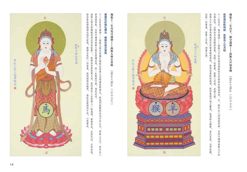 羊、猴守护神大日如来佛为佛教密宗所尊奉的最高神明,能除妖避邪,使人通天地之灵气、宏图大展。