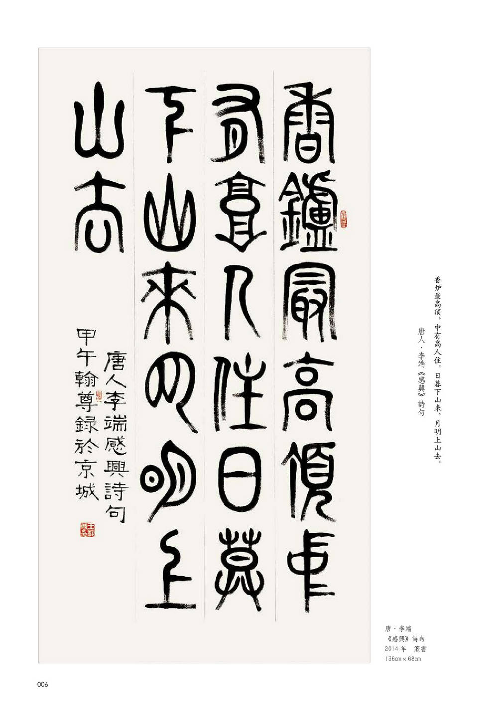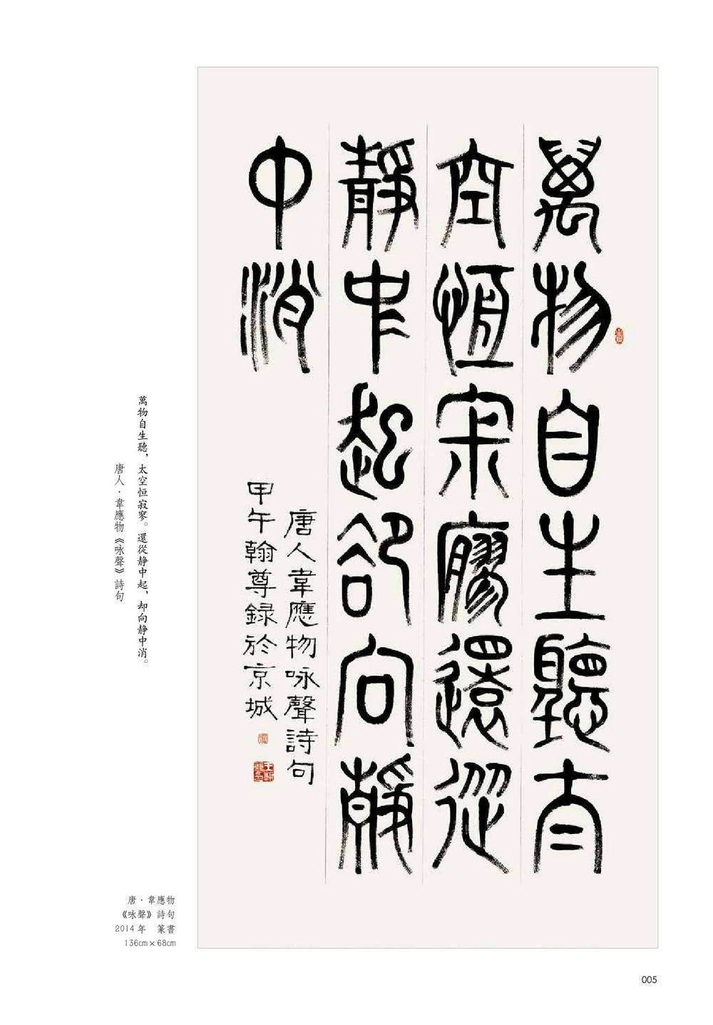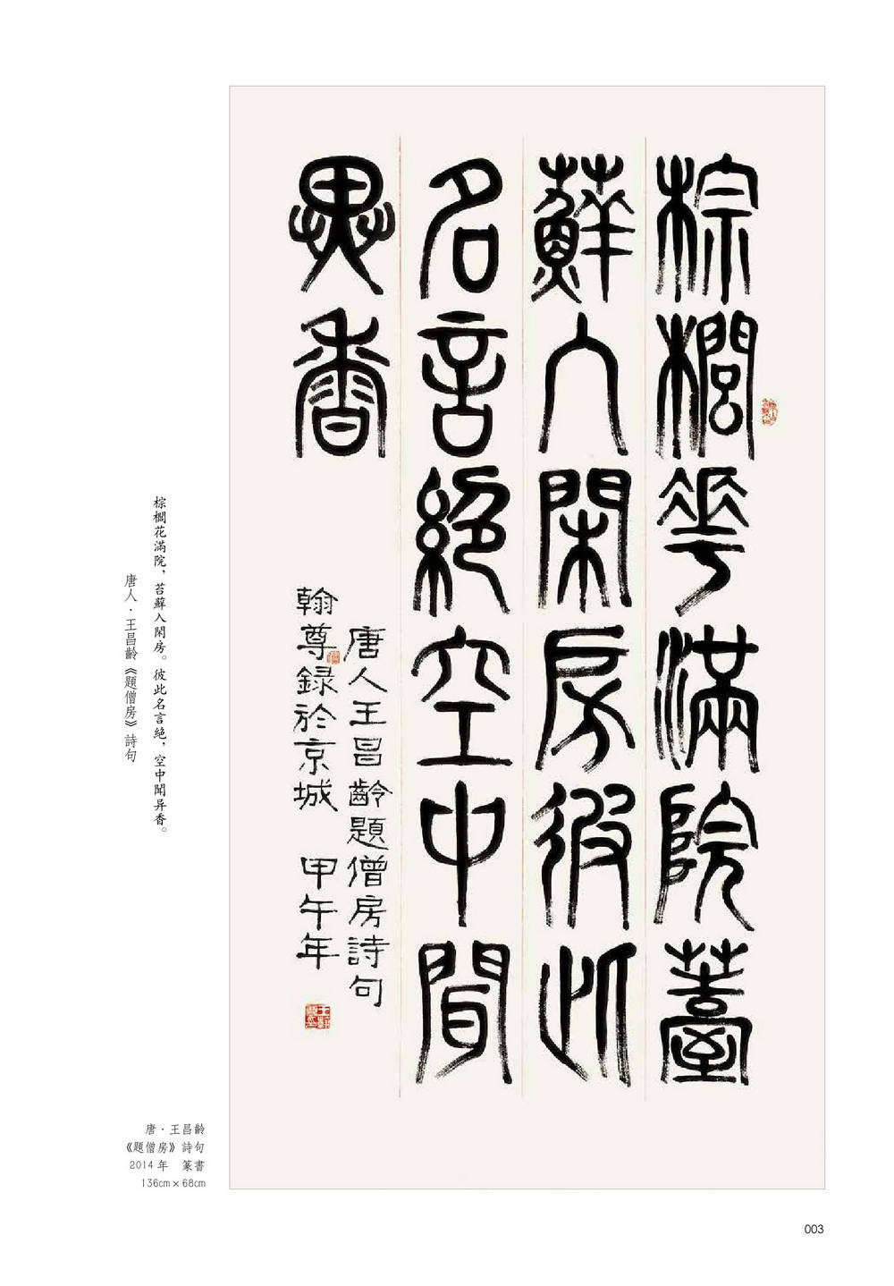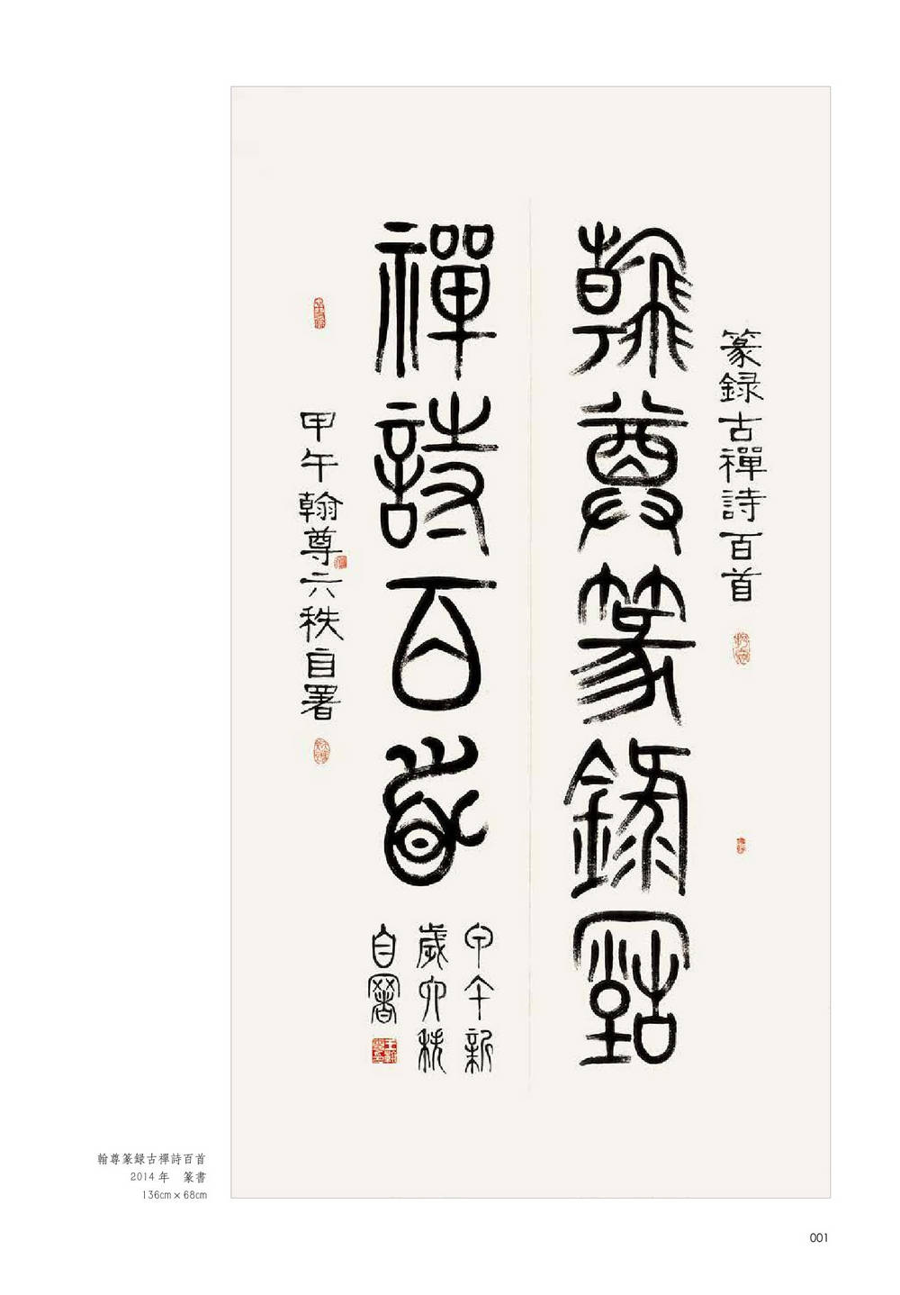 2014年,翰尊于自己60岁时汇集了唐、宋、元、明、清、民国诸家诗人的五言、七言、十言禅诗一百首,用了一年多时间,将其以独具个人风格的小篆字体书写完成每幅136 ×68cm(8平方尺)的竖幅佳作。在这一百首禅诗中,我尤喜爱唐朝李嘉佑《题道虔上人竹房》:
