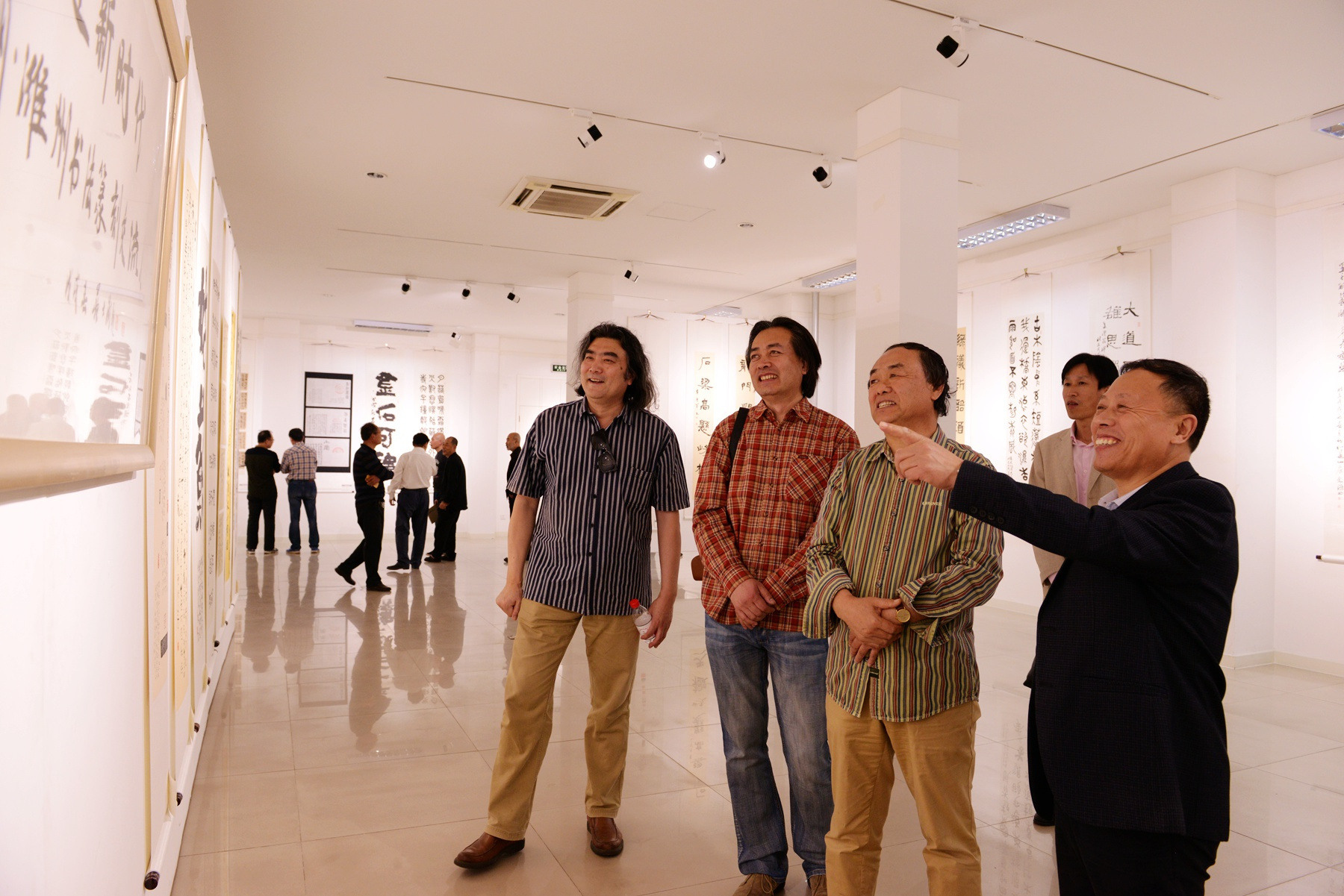 中国书法家协会主席苏士澍为两市交流展题写了展名,开幕式上山东省书法家协会副主席纪君宣读中国书法家协会主席苏士澍的贺电,潍坊市书法家协会名誉主席、陈介祺研究会会长陈新介绍交流展筹备情况,中国书协理事、江苏省书法家协会副主席王伟林讲话,中共潍坊市委宣传部副部长张仁科先生讲话并宣布交流展开幕!参加开幕式的领导嘉宾还有:中央美术学院教授、中国画学会会长郭怡孮, 潍坊文学艺术界联合会副主席任学军,中共潍城区委常委、宣传部部长武法栋,中国书法家协会理事、中国艺术研究院研究员、博士生导师陆明君,中国书法家协会理事、潍坊“万印楼”印社社长蒯宪,中国书法报社长助理、黑龙江省书法家协会副主席张日安,江苏省青年书法家协会副主席、苏州市青年书法家协会主席林再成,,中国书法家协会会员、秦皇岛市建筑设计院院长邹红喜,韩国江原道中韩文化交流协会长张益盛,韩国江原道篆刻家协会会长刘硕基,中国电力书协、安徽宣城书协代表,苏州、潍州两地参展书法家,潍坊市书法家协会主席团成员,潍坊书法篆刻家以及媒体群众。