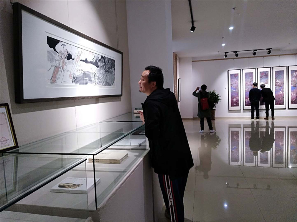 揭牌仪式成功举办后,出席现场的嘉宾参观了坐落在艺术城内的陈孟昕艺术馆,陈孟昕艺术馆展列出陈孟昕工笔、写意、素描等精品力作近五十幅。其中工笔画作品16件,写意画作品及部分写生作品30余件,作品可分三部分:一是代表作及全国美展获奖作品;二是具有探索性的意笔画新作;三是习作写生性质的线性作品。工笔画以极致的唯美浪漫的色彩和张力十足的壁画构成及错落有致的风俗画情节安排呈现出“大工笔”鲜明样式;写意画则以唐诗宋词的诗性意境和通络全篇的气韵用线及典雅施色彰显出极具个性特征的水墨新格,以此诠释人与人、人与自然、人与社会的生存境况、美学意义和文化内涵。