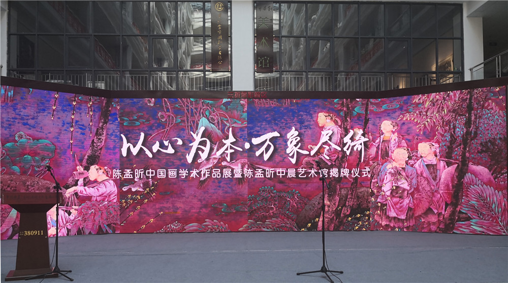 2018年4月28日上午09:08,坐落在青州中晨国际艺术小镇的“陈孟昕(中晨国际)艺术馆”正式开馆并举行了“以心为本·万象尽绮——陈孟昕中国画作品展暨陈孟昕中晨国际艺术馆”揭牌仪式。