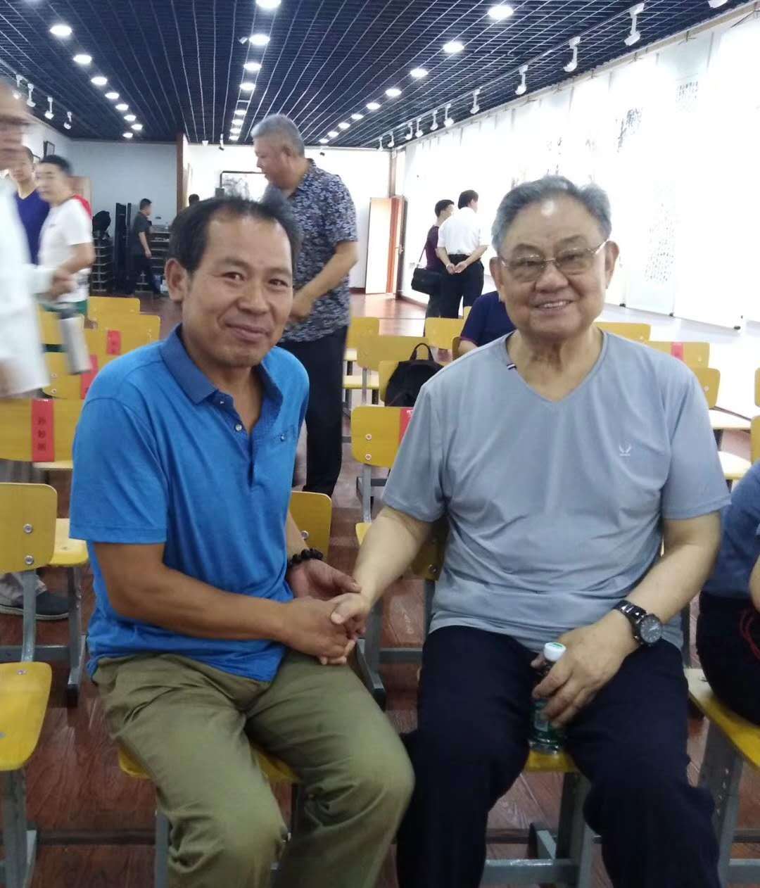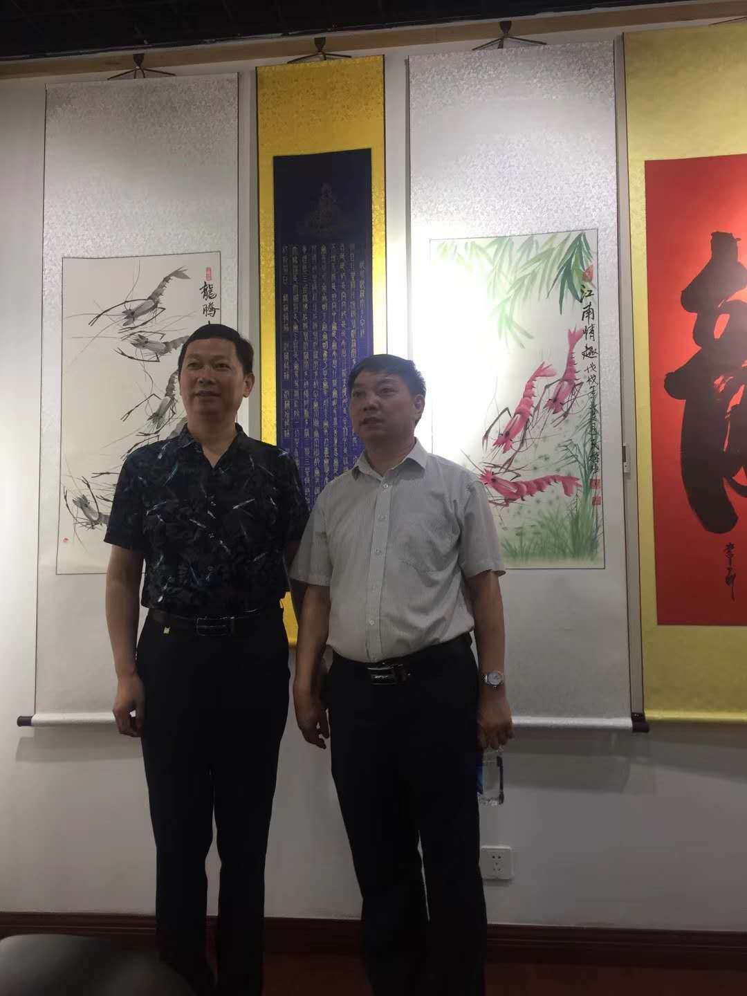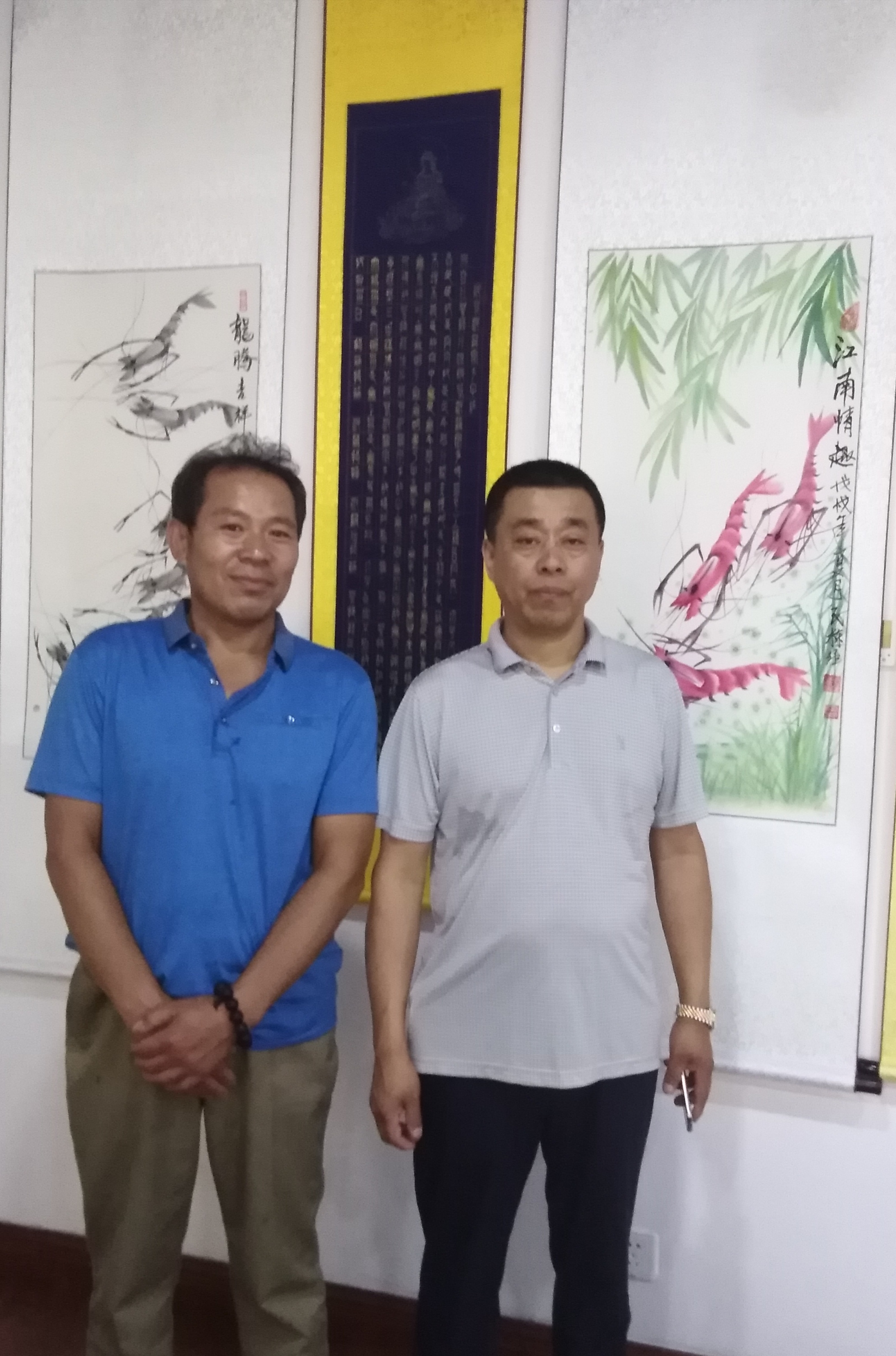 刘民栋与中国风水文化研究会常务理事、太极玄鱼国画始创人程文鸣亲切交流并合影留念