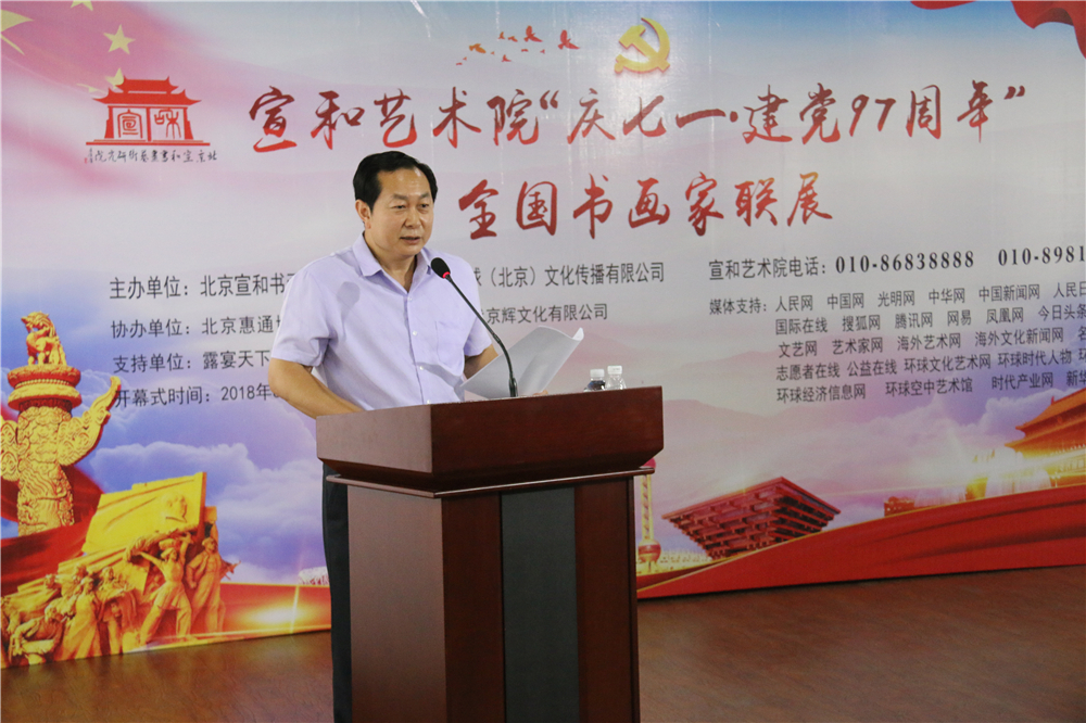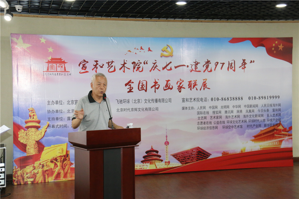 北京宣和书画艺术研究院常务副院长许顺喜主持画展开幕式