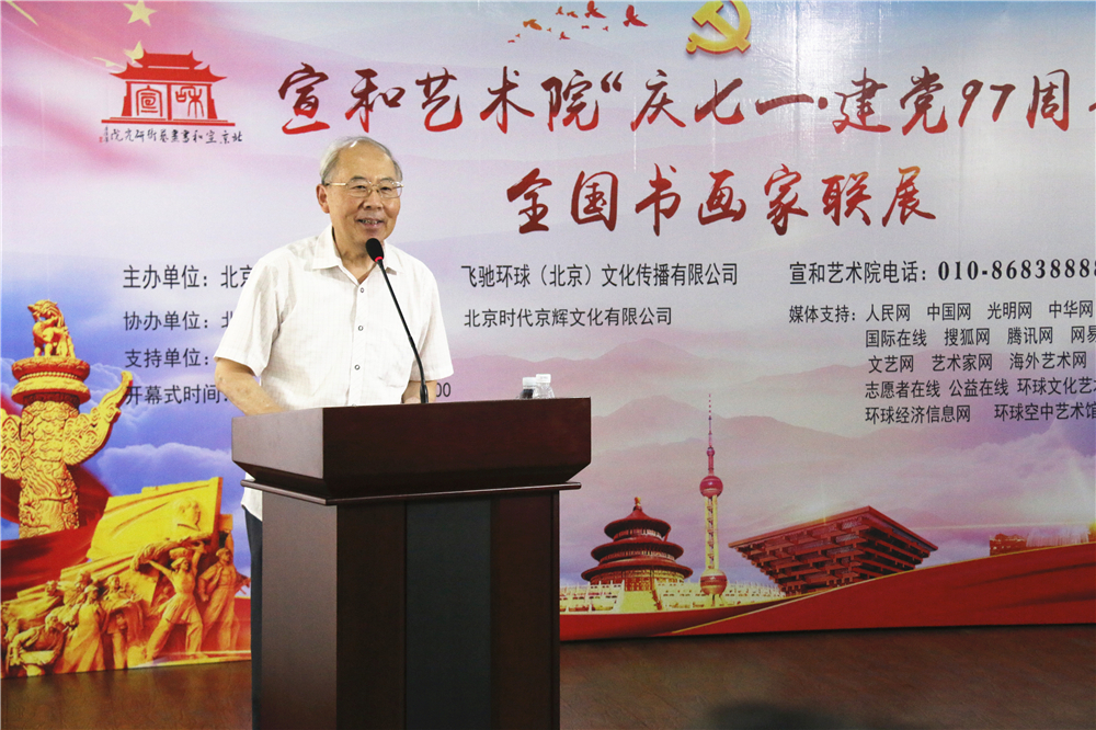 环球文化艺术网讯:书香诗韵歌盛世,翰墨浓情颂党恩。6月28日上午10时许,由北京宣和书画艺术研究院、飞驰环球(北京)文化传播有限公司主办;中共重庆市开州区红岩(北京)流动党员委员会、北京惠通博文书画院、北京时代京辉文化有限公司协办;露宴天下酒业集团大力支持的北京宣和书画艺术研究院“庆七一建党97周年”全国书画名家联展在北京举行,画家刘民栋应邀参展,并展示了两幅代表性作品。受到现场观众的一致好评。