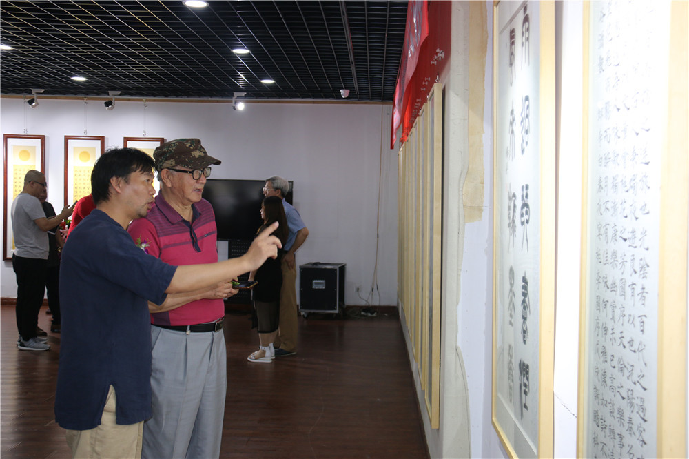 开幕式由中央电视台著名主持人陈志峰主持,出席开幕式的嘉宾有:中央军委战略规划办公室原副主任马建国将军 ,中国军事思想及党史研究专家、中央政策研究室政治组原负责人、国防大学教授黄宏将军,全国政协秘书局原局长郭信礼,中国书法家协会理事、北京市书协副主席杨广馨,北京市书协理事、北京市西城区书协主席冷万里,北京市书协理事曹佳林,中央财经大学画院副院长胡晓波,中国东方书画院副院长张加良,清华大学美术学院美术理论研究与书画创作研究生导师丁子同,中国职工书协秘书长舒杰,中国美术家协会会员、清华美院导师助教刘峰 ,中央电视台导演、人民书画院副院长张航,中央电视台《魅力人物》栏目制片人君临,中央电视台《魅力人物》栏目制片主任王燕,中国人民解放军空政文工团歌唱家珊瑚,北京永定河研究会会长张广林,北京二商集团展览馆馆长王学平,北京宣和书画艺术研究院院长单玉志,北京《艺术平台》文化有限公司创始人画家李轩,北京惠通博文书画院常务副院长李玉川、副院长李俊硕,北京彪光核韵文化发展有限公司创始人李悦,北京和而不同文化发展有限公司董事长马军,湖北省宜昌市德宝堂董事长杨千石,河北省迁安市书协副主席王挥杰,山东省滨州市春晓针复制衣集团有限公司董事长郁有国等数十位领导和近200位嘉宾。