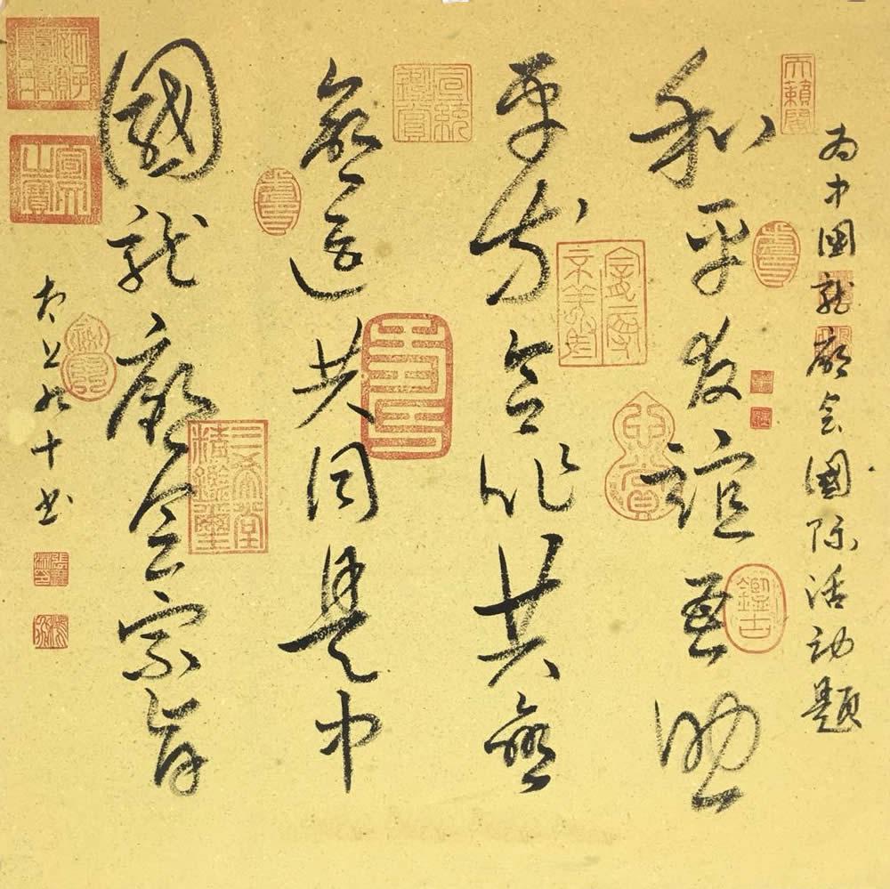国务院国礼书画家太上九十张鑫淋先生,依据中国林业与环境促进会秘书长程谦对迪拜龙庙会国际展会的讲话精神,书写出了三幅国礼草书作品。