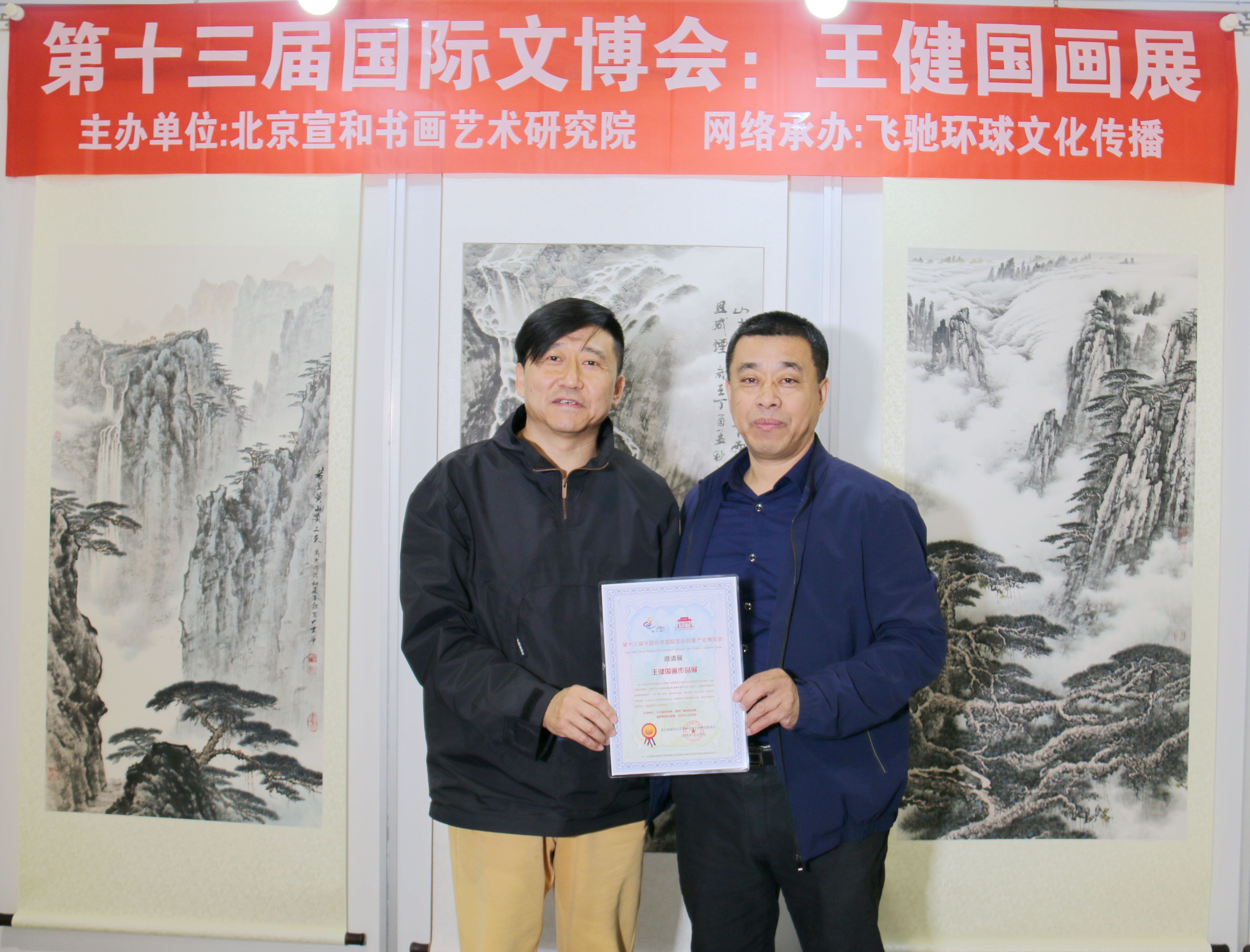 北京宣和书画艺术研究院执行院长单玉志向王健颁发参展证书