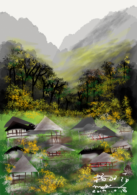 从铅笔画到水墨画,杨羽莎女士也曾走过弯弯曲曲的求艺之路,可是这一路的探寻,虽然让她成长,却也让她逐渐落入了一个困局之中,那就是水墨画有限的色彩和表现手法在一定程度上局限了表达的内容,这并不能透彻地反映出她心中那个世界的全貌,所以她便想要跳出来,去寻找一种新的表达方式。