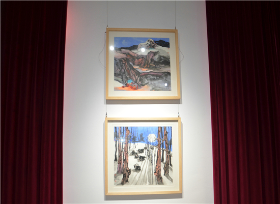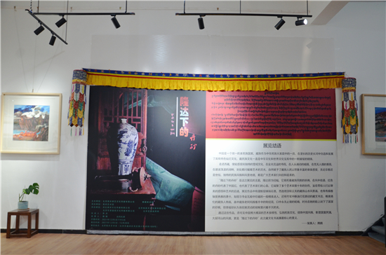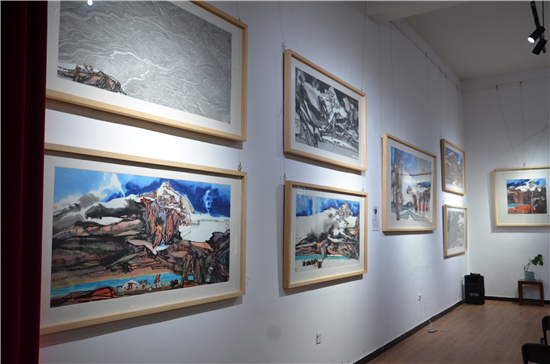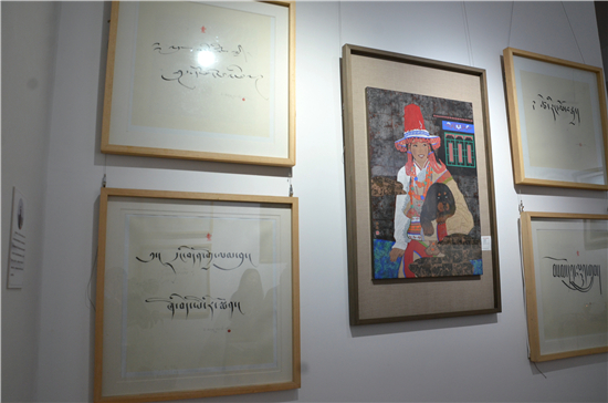 自然赋予了藏族人民以想象丰富的审美感受。无论宗教还是世俗,独特的民族风格和风景地貌,都是广大艺术家们向往和追求的。“隆达下的丹砂”是这次展览的主题,隆达即为经幡,它寄托着藏族同胞的祈祷,在风中低语。红色的丹砂代表了中国红,也代表了艺术家们的心血。它凝聚了多个艺术家数十年的创作,旨在带给人们以审美的感悟和艺术的启迪。展览作品中有望断层梯瑞石悬,思连绝顶叹云天的藏族山水风景画。也有布绢卷轴里典雅的唐卡。如塔尔寺金瓦殿中珍藏的一般精美迷人。还有竹笔中酥油灯花跳动的藏文书法。唯美绝伦的藏族人物画,画中藏族老阿妈握着手中的转经筒,口中永无止境的呢喃,时光在她的脸上刻下了深深的印痕,但幸福却长久地在她灵动的双眸里闪着不灭的光。